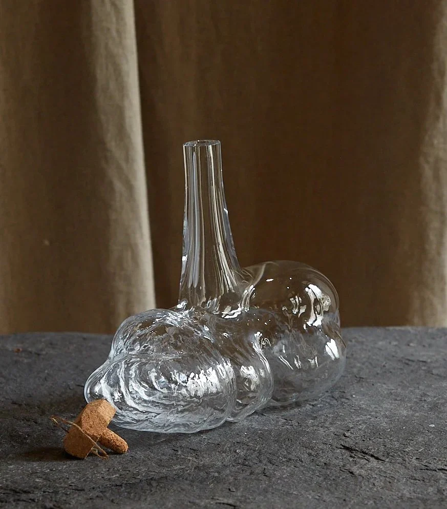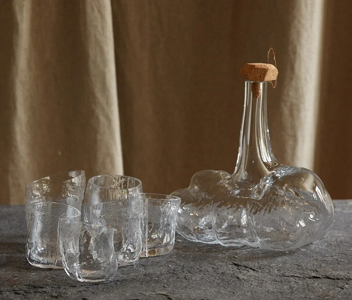 En convoquant les premiers contenants de l’humanité, réalisés en peaux animales et la technique millénaire du verre soufflé l’artiste et designer Thibault Philip conçoit un service dont l’essence repose sur le vivant et dont la valeur esthétique provient de ce qui d’ordinaire rebute.